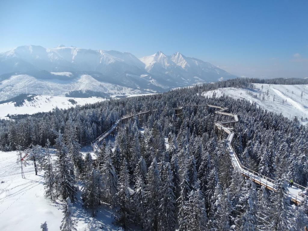Nechybí ani sluneční terasa s výhledem na Tatry, zahrada s dětskými atrakcemi a srubový altán se zahradním grilem a kotlíkem na guláš. Parkování je zajištěno přímo u domu pro tři auta. Pobyt s domácím mazlíčkem je vítán.